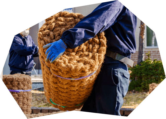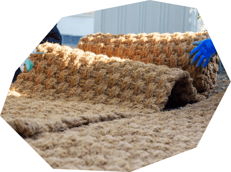 さらに、コイヤーグラウンド®の『そのまま土に還る』特性は、災害現場などで撤去コストを省く合理的な選択肢となり、環境と経済の両面で持続可能な解決策を提供します。