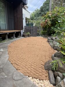 東京都三鷹市のS様邸 庭園(約10平米)へ 敷設工事を行いました。