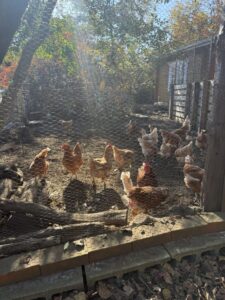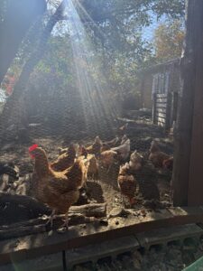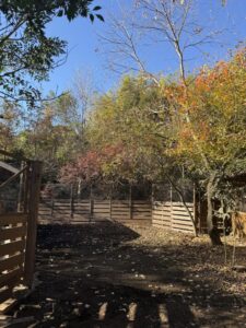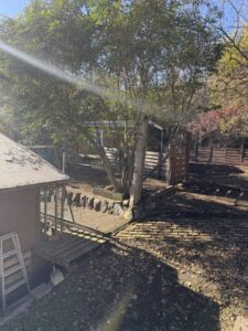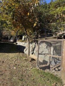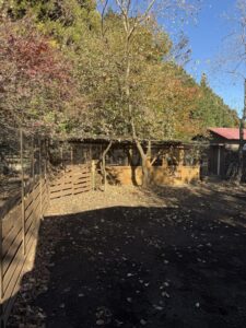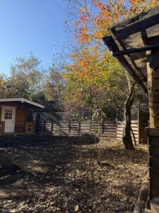 小屋の側面から裏はニワトリちゃんが自由に運動できる広大なスペースが。ストレスフリーなのか、とっても人懐っこい。気がする。