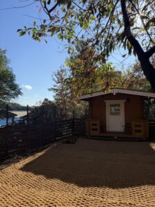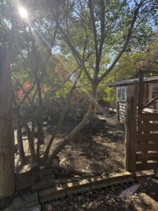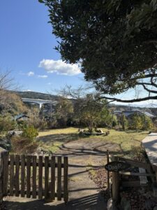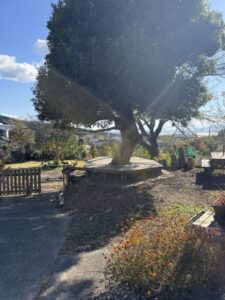 大木を囲うサークルベンチとドッグラン。すでに楽園です。