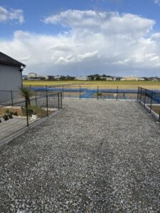 母体が建築関係の企業様なので、下地や構造の打合せも非常にスムーズ。今回の砕石は、ある理由から少し変化を付けています。