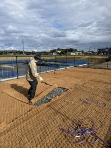 基本敷設完了。今回は下地要件から、収縮待ちの段階施工としました。