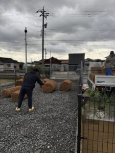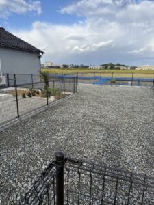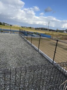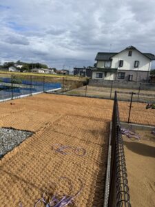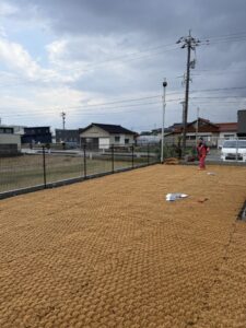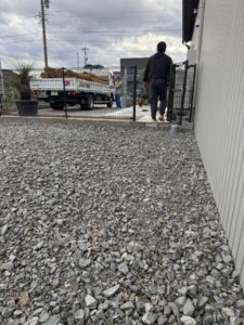 母体が建築関係の企業様なので、下地や構造の打合せも非常にスムーズ。今回の砕石は、ある理由から少し変化を付けています。