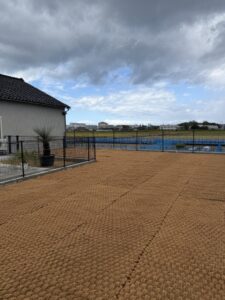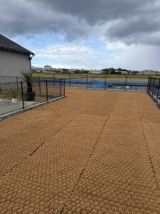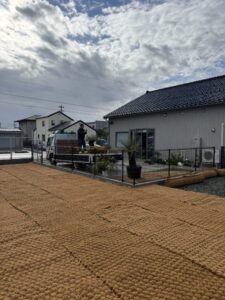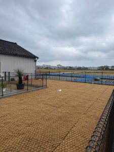 基本敷設完了。今回は下地要件から、収縮待ちの段階施工としました。