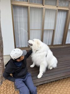 ワンちゃんがソワソワと様子を見に来てくれました。