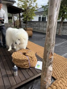 ワンちゃんがソワソワと様子を見に来てくれました。